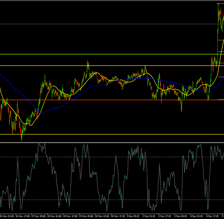 La media móvil rápida (amarilla) muestra un cruce reciente con la media móvil más lenta (azul), indicando un posible cambio en la tendencia.